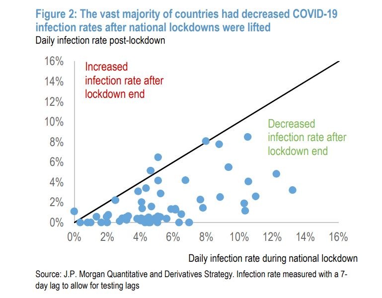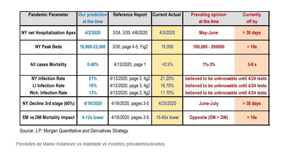 Um relatório de pesquisa de Marko Kolanovic, chefe global de pesquisa macro-quantitativa e de derivativos do J.P. Morgan, avalia que os governantes se assustaram com "artigos científicos falhos" e decretaram lockdowns "ineficientes ou atrasados" que destruiram empresas, empregos e vidas sem, contudo, mudar o curso da pandemia.