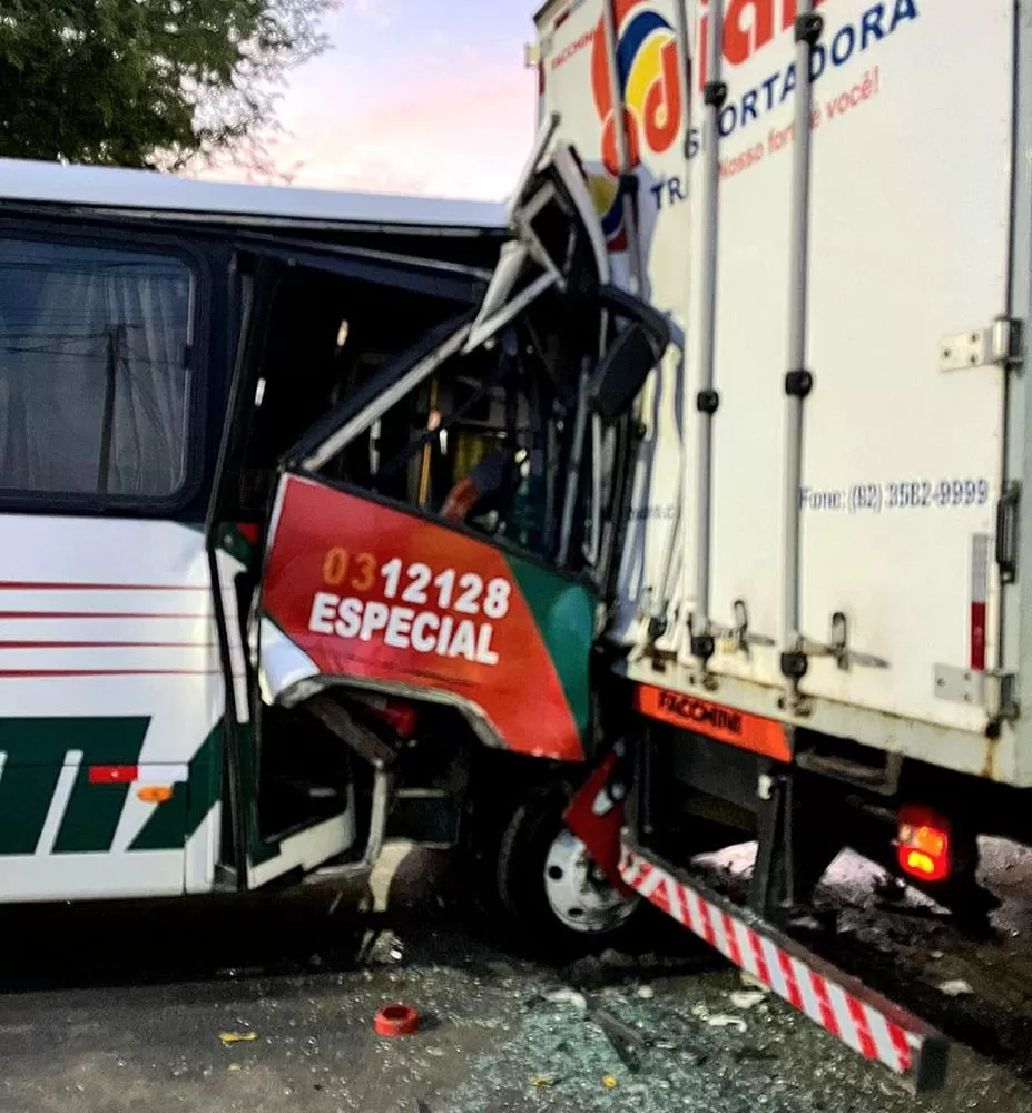 O trânsito na avenida Grande Circular, Zona Leste de Manaus, ficou caótico após um micro-ônibus colidir na traseira de um caminhão, nas primeiras horas da manhã desta quinta-feira (12).