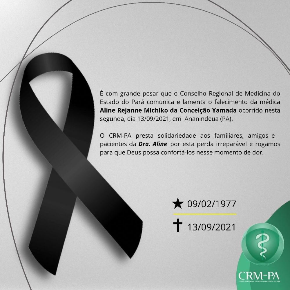 O Conselho Regional de Medicina do Estado do Pará emitiu nota de pesar pelo falecimento da médica.